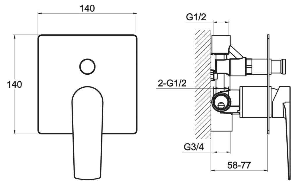 Смеситель встроенный однорычажный 2-х проходной CELL BLACK 135-2-B Boheme