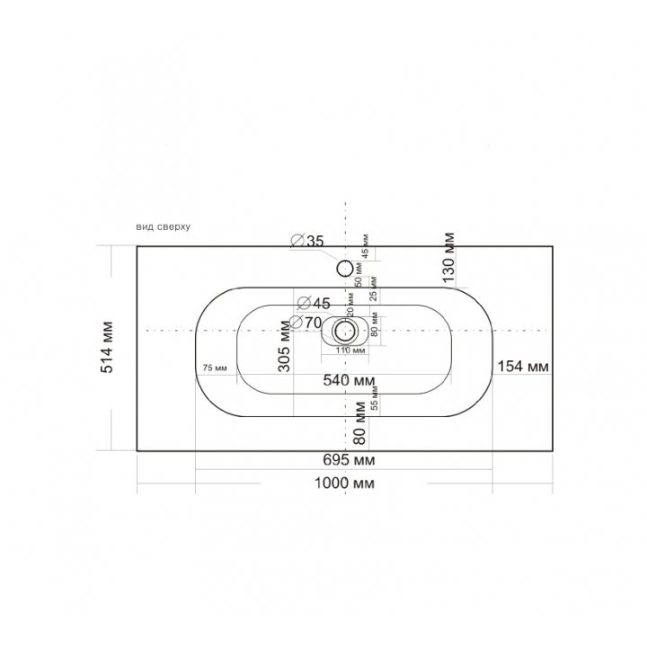 Керамическая раковина SOFT, 1005x470x168 BelBagno